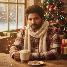 Take the uploaded clear portrait of the male subject and transform it into a stylish Christmas holiday photo: he’s wearing a cozy dark-green wool overcoat, a crimson scarf loosely draped, standing in front of a softly lit room decorated with warm fairy lights and a large decorated evergreen tree behind him. Soft golden-hour lighting, subtle bokeh in the background, realistic skin tones, slight rim-light on his hair. Add a few gently falling snowflakes outside a large window in the background. Ultra-high definition photo, 8K resolution, cinema-style lens (85 mm), shallow depth of field, natural expression, no cartoon-ish filter, just elegant holiday luxury.